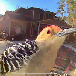 Fascinated with the quality of footage it takes. We have hawks in our yard and I held my breath when we first installed it, hoping I wasn’t putting a target on the birds. But so far, I’ve seen finches, cardinals, the beautiful NA blackbird, bluebirds, and a redheaded woodpecker.