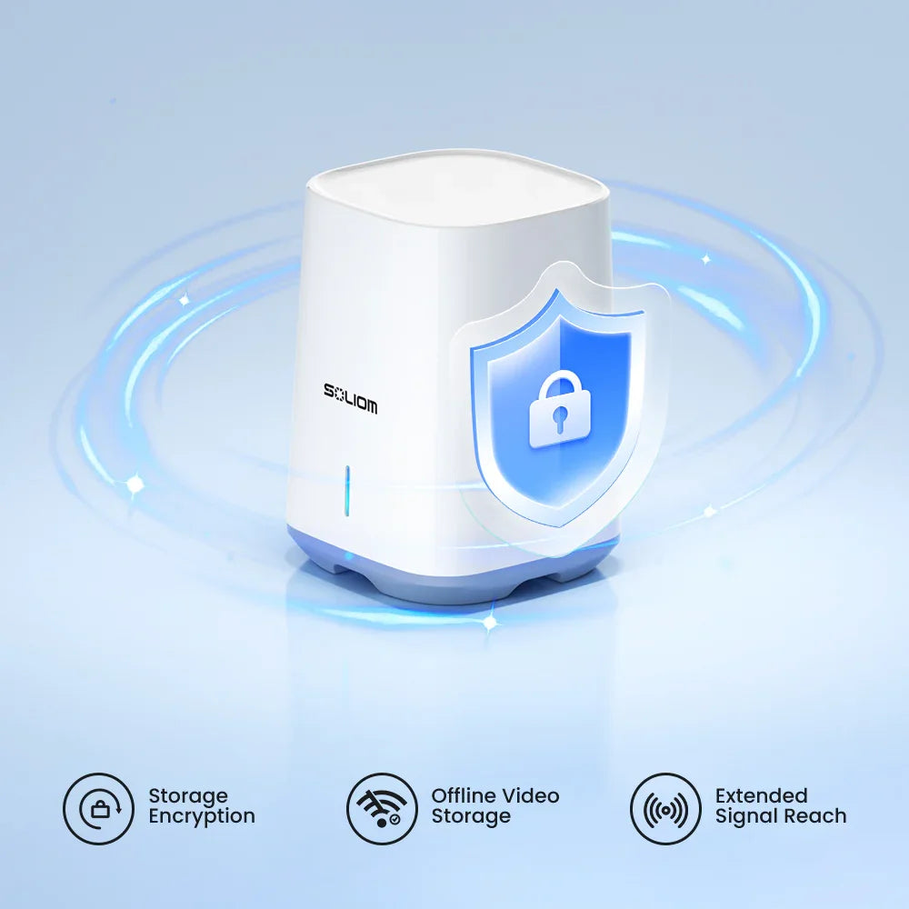 - Your cameras automatically pair with the Soliom base as soon as it's powered on—no extra setup needed.