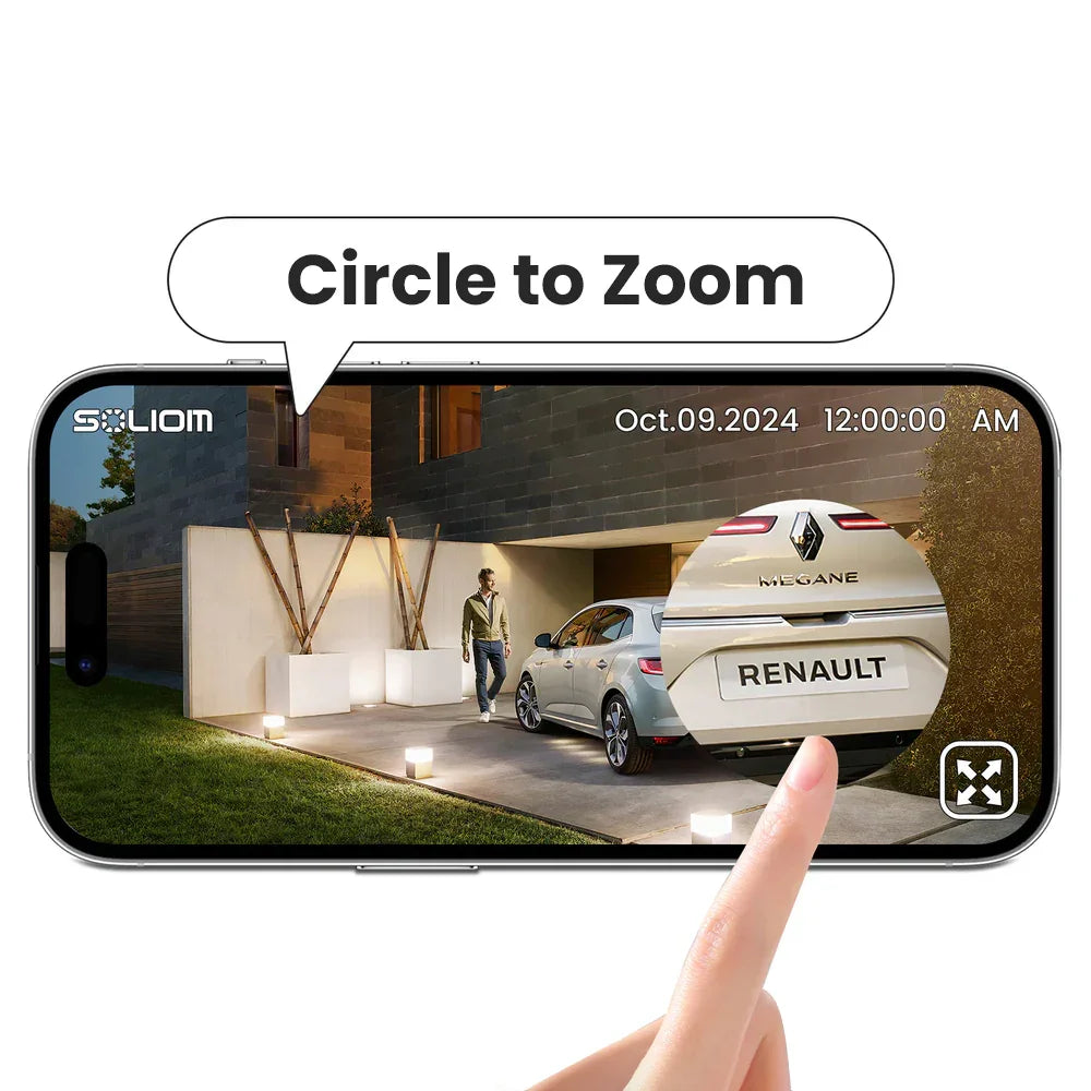 Magnifier Zoom is a Soliom security camera feature that lets you draw a circle on the live screen to instantly enlarge that area. This helps you spot small details, like license plates, faces, or packages, without blurring the rest of the video.