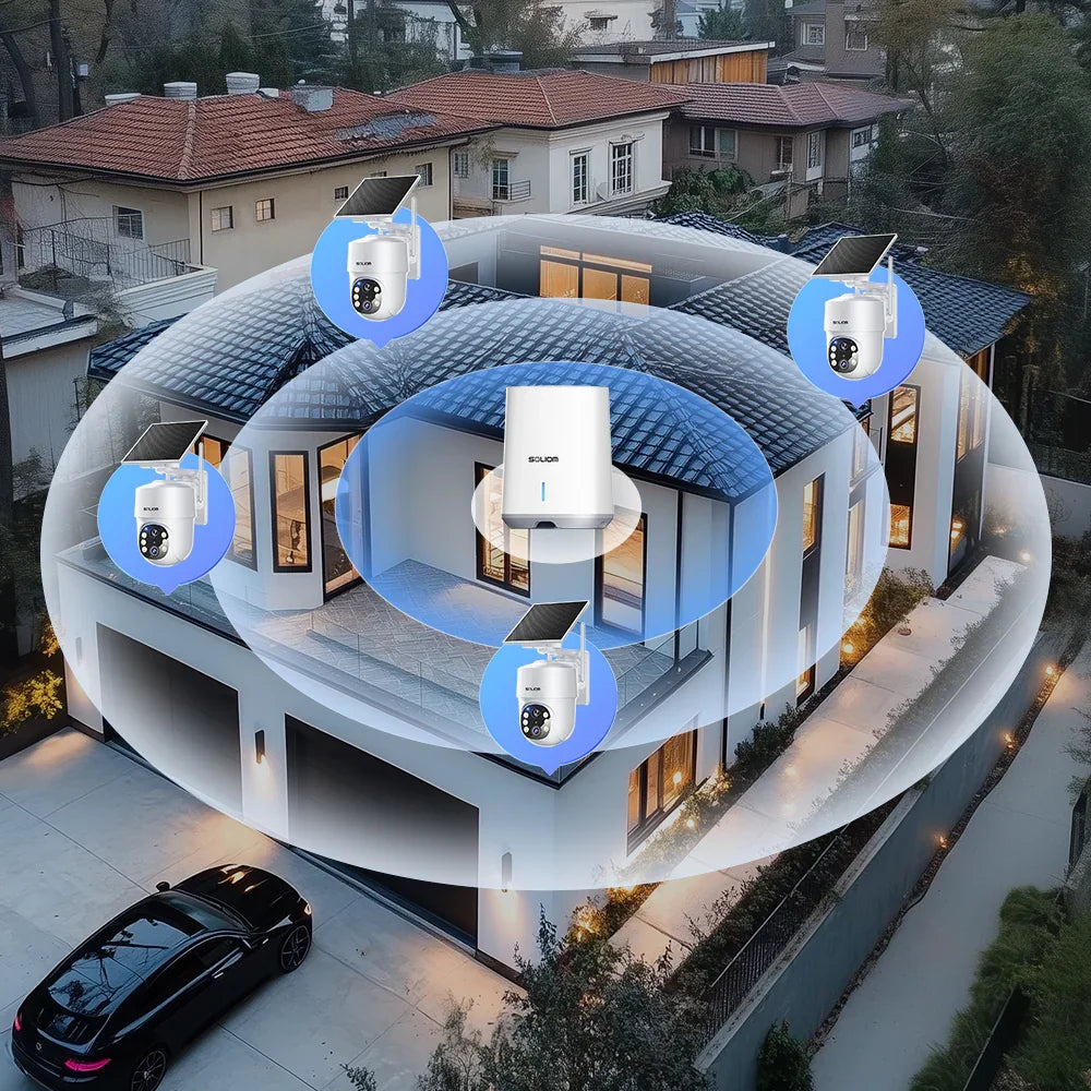 Soliom Wireless 5MP UHD Outdoor Solar Powered Security with Homebase, 3K Res, 360°PTZ, 2-Cam Pack, 4-Cam Pack, No Subscription