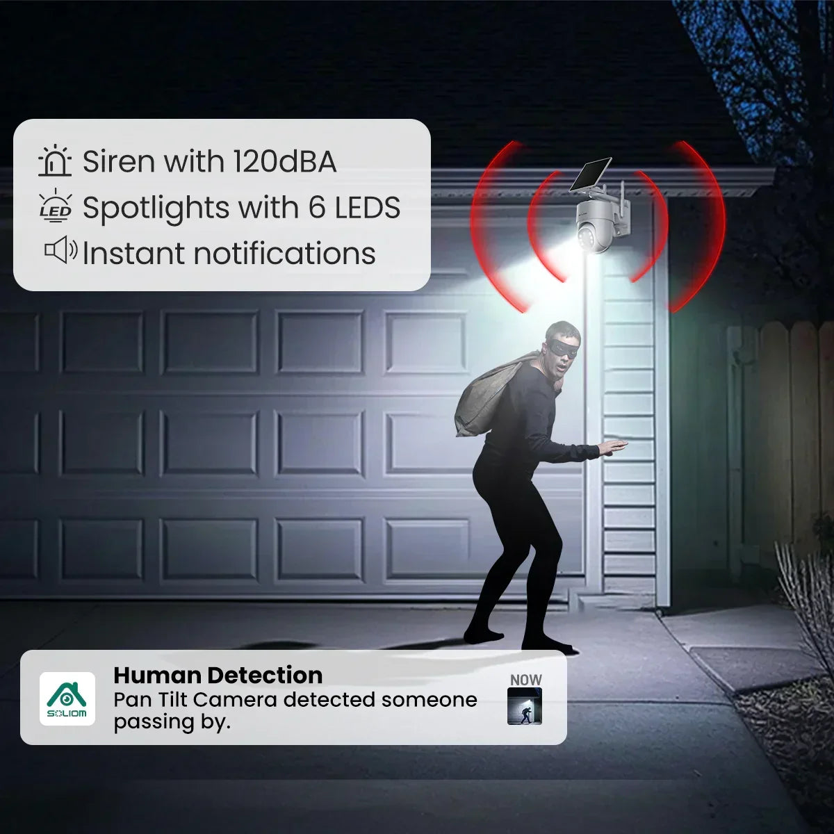 Soliom’s advanced hardware, cloud technology, and AI-powered motion analysis deliver 200% improved alarm accuracy, ensuring you’re alerted to what truly matters. The intelligent AI system distinguishes between human activity and non-human motion, significantly reducing false alarms for a more reliable experience.
