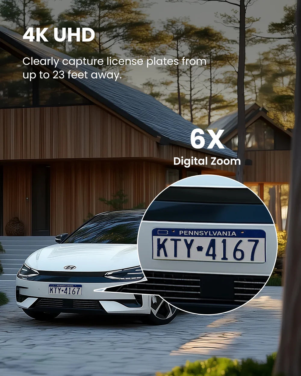 With 6x digital zoom, the optimal distance for reading a car license plate is approximately 33 feet (10 meters).