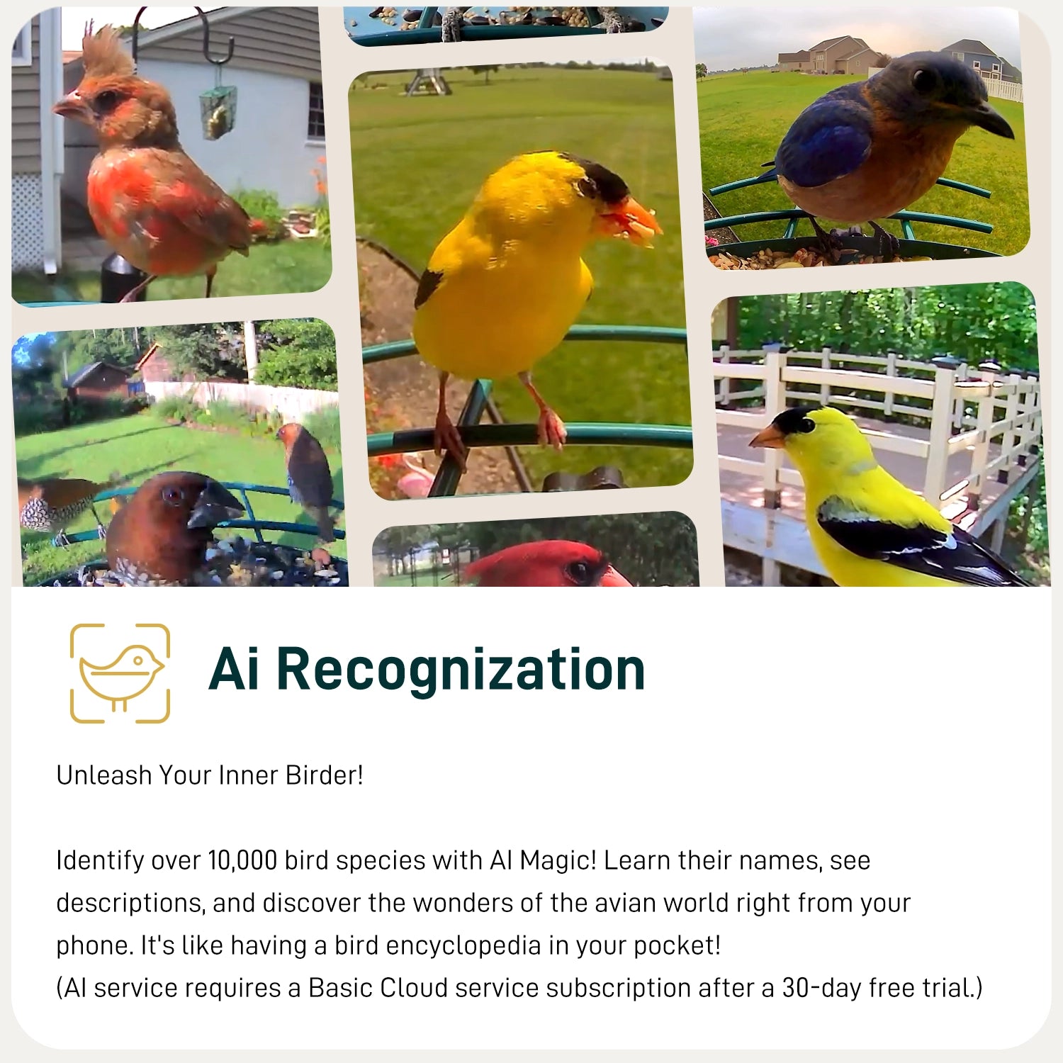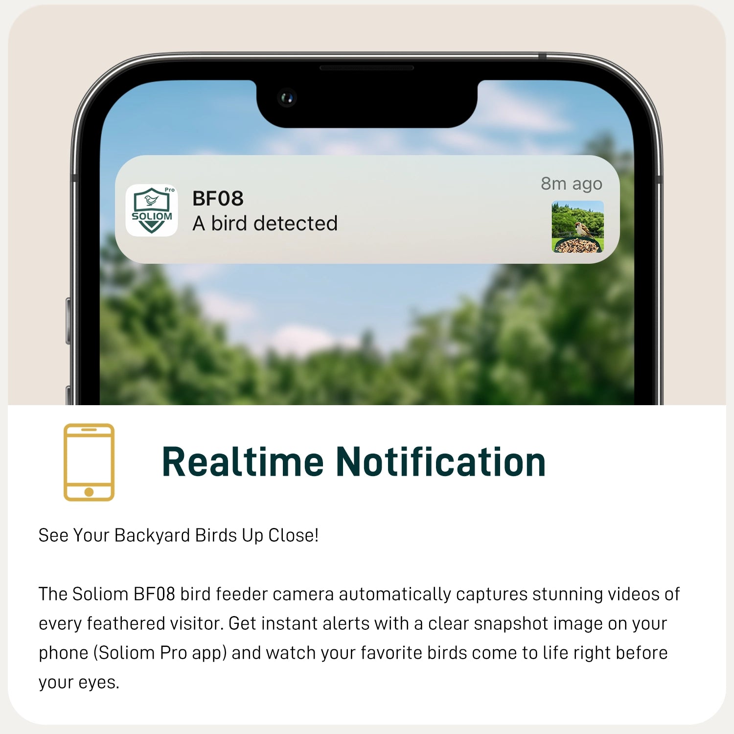 The Soliom Pro BF08 isn't just a bird feeder, it's a portal to the fascinating world of our feathered friends. This smart camera captures stunning videos of every visitor, with AI magic identifying over 10,000 bird species! Get instant alerts on your phone and watch them come alive in vibrant detail.