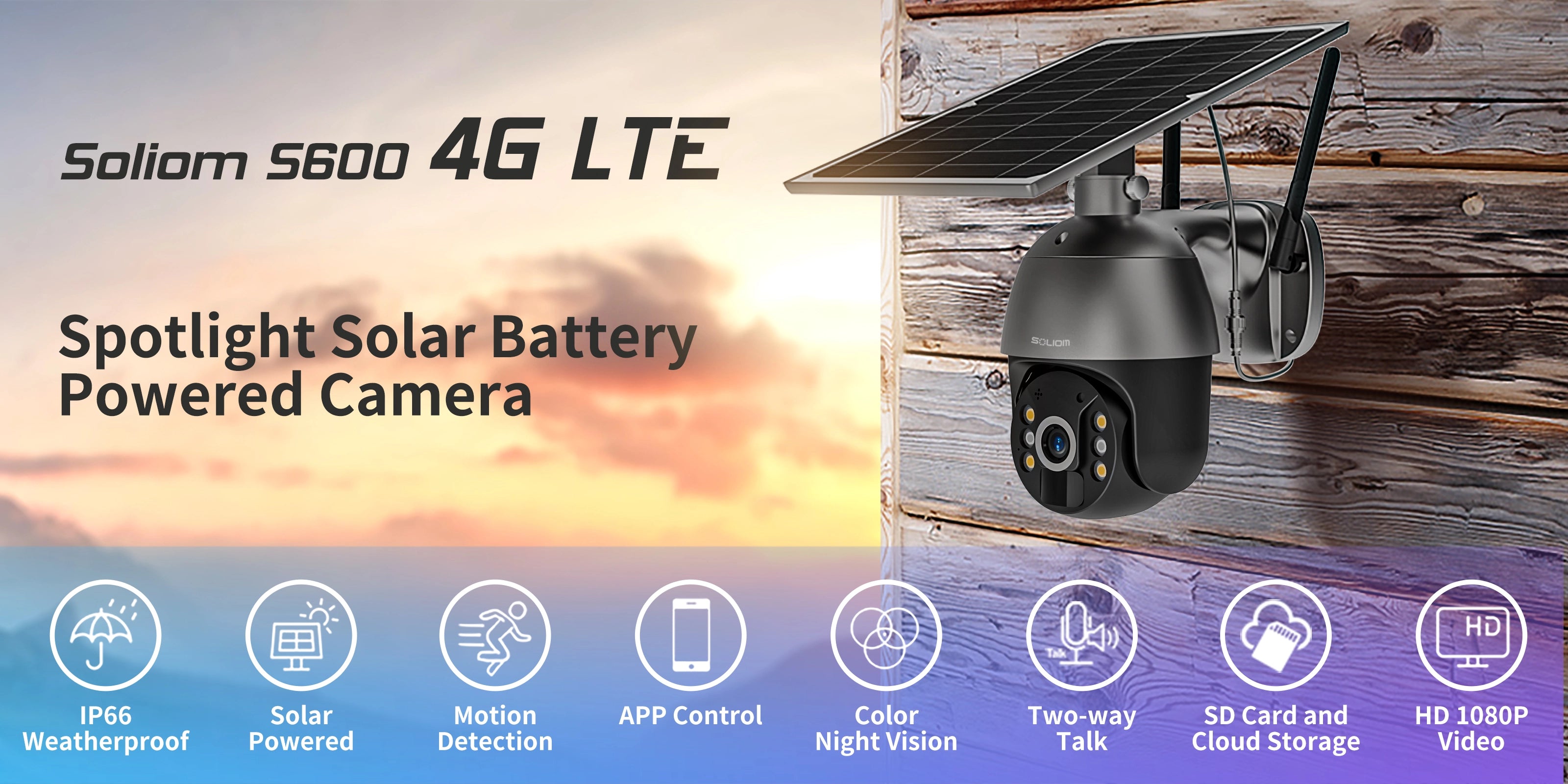 - Unmissable Security: The S600 4G LTE outdoor camera keeps watch over your entire property with a 360° panoramic view. Pan, tilt, and zoom remotely using the Soliom+ App to ensure no blind spots go unchecked.