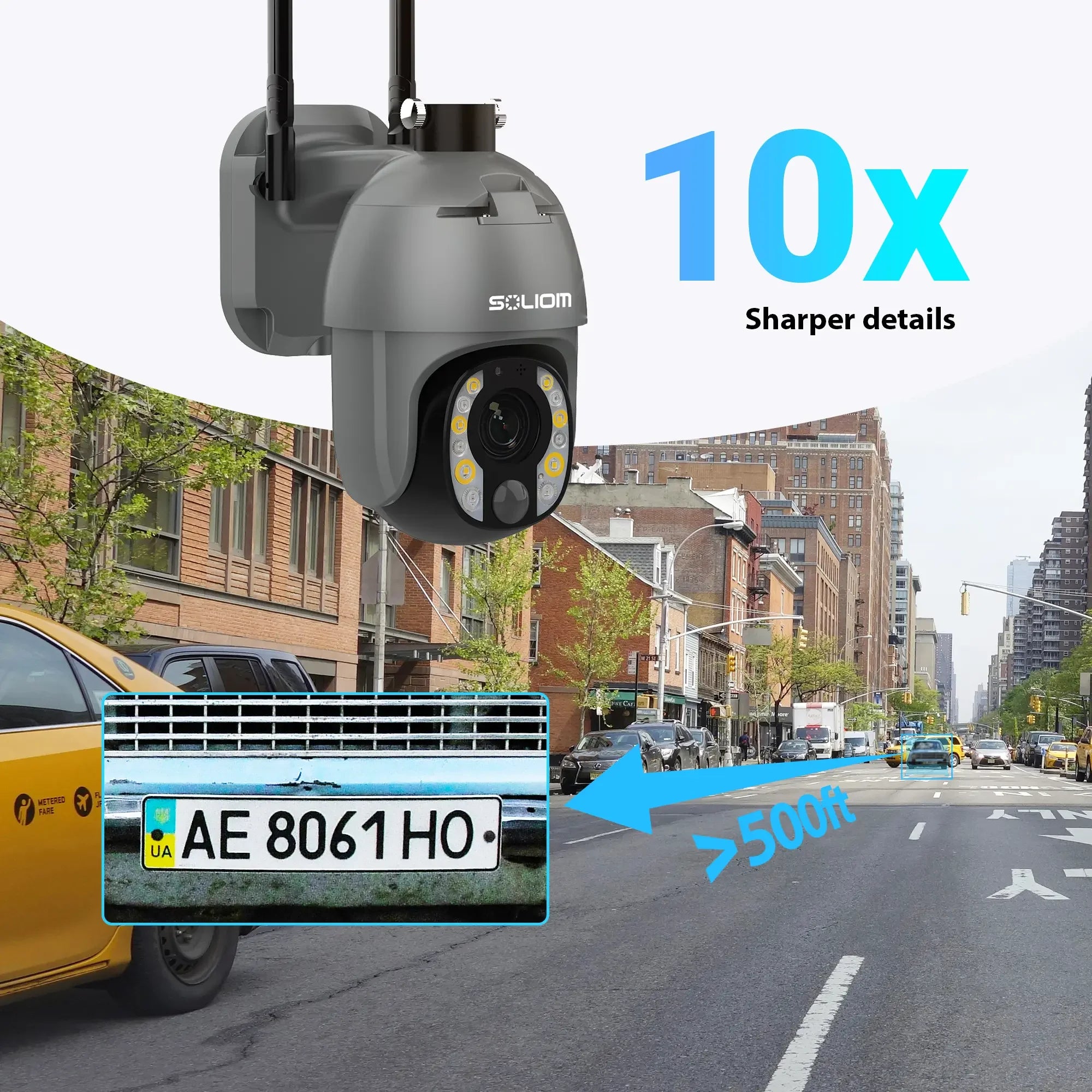 - Powerful 10x Optical Zoom: Get a closer look without sacrificing image quality. Zoom in on objects and clearly identify details like license plates from up to 500 feet away.