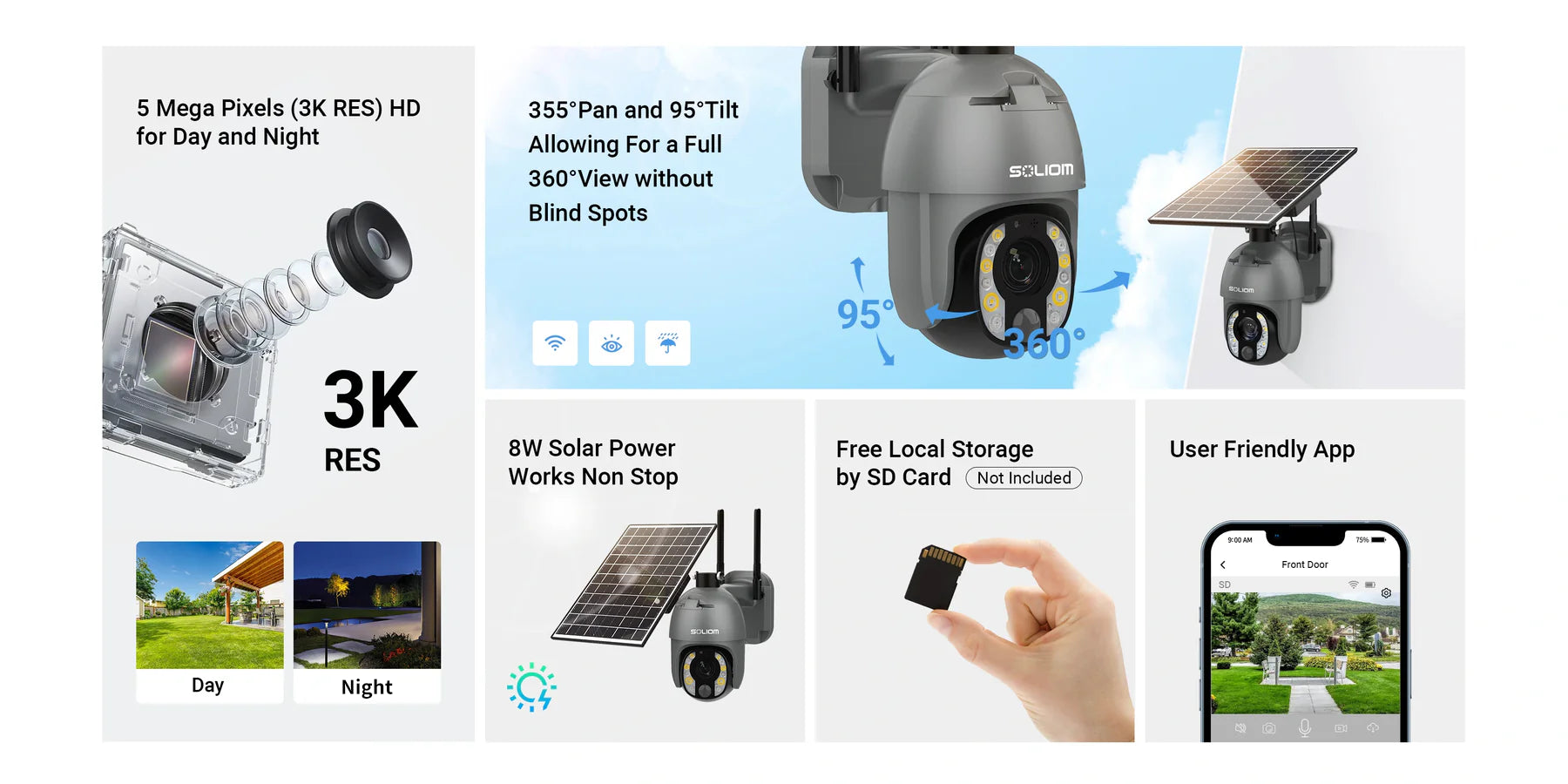 - Solar Power: An 8W solar panel continuously tops off the camera's 15000mAh battery, providing uninterrupted eco-friendly power for most situations.