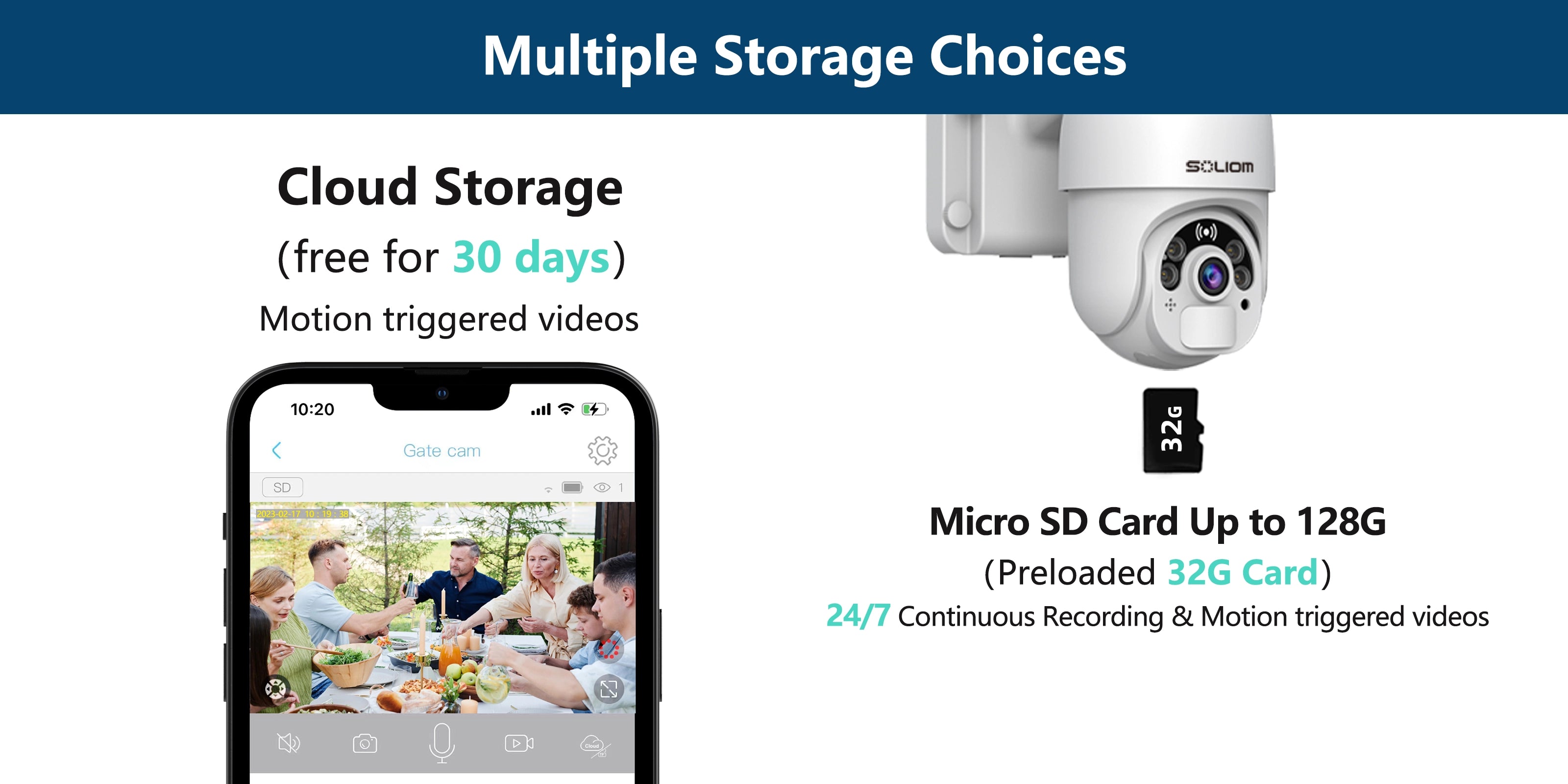 32GB Micro SD card can support 10 days cycle of 24hrs recording (Preloaded in this Camera)